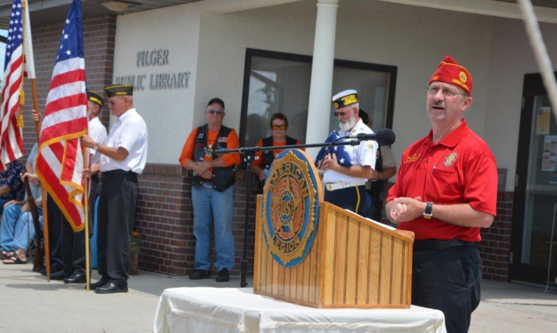 “It’s good to be here in Pilger,” he said. “I am the national commander of The American Legion, the largest veterans service organization in the United States. But today, being here in Nebraska, the proudest thing that I have on my hat is ‘Nebraska.’ So thank you for having me here for this very, very special moment.”