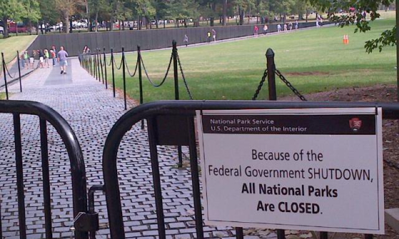 A message on the National Park Service website states, "Because of the federal government shutdown, all national parks are closed and National Park Service webpages are not operating. For more information, go to www.doi.gov." After a few seconds, the page switches over to the Department of the Interior website.